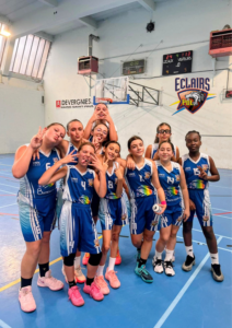 « Début de match discret, le temps pour l’équipe de s’adapter aux principes de jeu demandés. Après trois minutes, tout le monde est en place : la défense devient solide, le ballon circule bien et on trouve la joueuse libre. L’équipe déroule et atteint la mi-temps avec 19 points d’avance. En seconde période, les joueuses poursuivent sur la même dynamique. Défensivement, elles étouffent l’adversaire, et en attaque, elles font les bons choix collectifs. Le match se termine sur un très bon résultat : 38 à 89. Une belle prestation d’ensemble, sérieuse et engagée, avec un vrai esprit d’équipe du début à la fin. Bravo les filles ! »